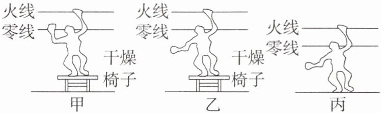 ;当发生触电事故时,漏电保护器不会跳闸的是图甲