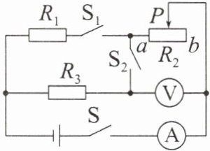 )A. 当滑动变阻器$R_2$的滑片P在b端,只闭合开关S、$S_1$时,电流表的示数为0.3A,电压表的示数为0