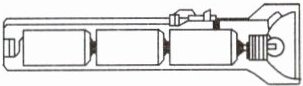 8. 如图所示,手电筒中的电流为$ 0.6 \text{A} $,电源为三节新干电池,则该手电筒中的小灯泡工作$ 1 \text{min} $消耗的电能为(