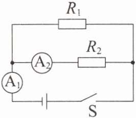 16. (2024·南开中学期中)如图所示的电路中,电源电压始终不变,定值电阻$ R_{2} $为$ 30 \Omega $。闭合开关$ \text{S} $后,发现两电流表示数之差为$ 0.1 \text{A} $,且电流表$ \text{A}_{2} $的示数为$ 0.2 \text{A} $,求: