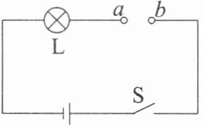 11. 如图所示的电路中,不计温度对灯丝电阻的影响,电源电压保持不变。当在a、b间接入“6 V 6 W”的灯泡$L_{1}$时,闭合开关,灯泡L和$L_{1}$恰能正常发光;断开开关,在a、b间换接一个“6 V 8 W”的灯泡$L_{2}$后,再闭合开关,与接入灯泡$L_{1}$相比,此时灯泡L会