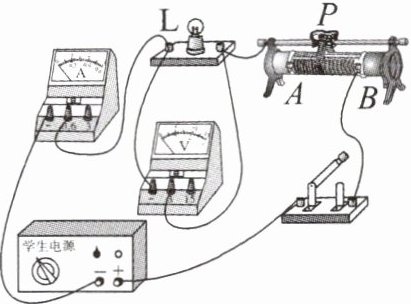 当开关S闭合,$ S_{1} $、$ S_{2} $断开时,滑动变阻器和灯泡串联,电流表测的是电路中的电流;滑动变阻器的滑片P在中点位置时,此时电路的总电阻
