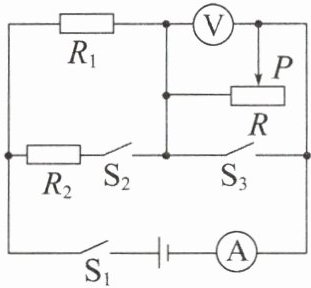 (1)当开关$ S_{1} $、$ S_{3} $闭合,$ S_{2} $断开时,只有定值电阻$ R_{1} $与电流表串联接入电路中,则电流表的示数