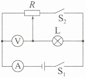 7. 如图所示的电路中,灯泡L标有“6V 6W”的字样(设灯泡电阻不变),滑动变阻器的最大阻值为20Ω,电源电压保持不变,电流表的量程为0~3A,电压表的量程为0~3V。将滑片滑到最左端,闭合开关$S_{1}$、$S_{2}$,电流表的示数为1.3A。断开开关$S_{2}$,只闭合开关$S_{1}$,在电路的安全范围内移动滑片,当滑片从左端向右移动的过程中,电压表的示数与电流表的示数的乘积