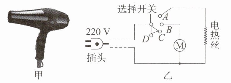 8. 小李家的一个家用电吹风机如图甲所示,其简化电路如图乙所示,铭牌上的主要参数见下表。当电吹风机吹冷风时,正常工作5min消耗的电能为