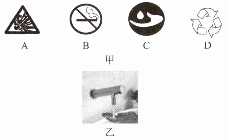 是国家节水标志。淡水资源是人们赖以生存的重要自然资源,我们应倍加珍惜,从我做起。如图乙所示,水没有固定的形状,但有一定的体积。常温(23℃)下水以液态