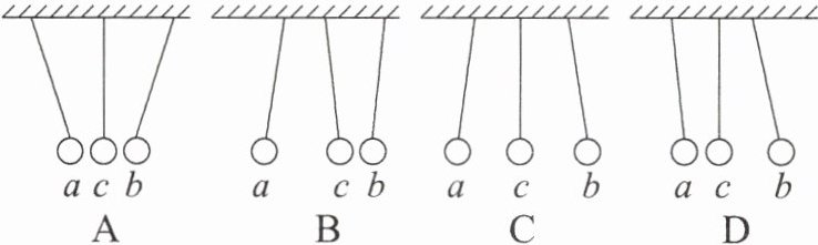 13. (科学推理)假如自然界存在第三种电荷,且遵循已有的电荷间的作用规律(即同种电荷相互排斥,异种电荷相互吸引)。a、b、c三个轻质小球分别带正电荷、负电荷和第三种电荷,均用绝缘细线竖直悬挂,相互靠近但始终不接触,三个小球的最终状态可能为(