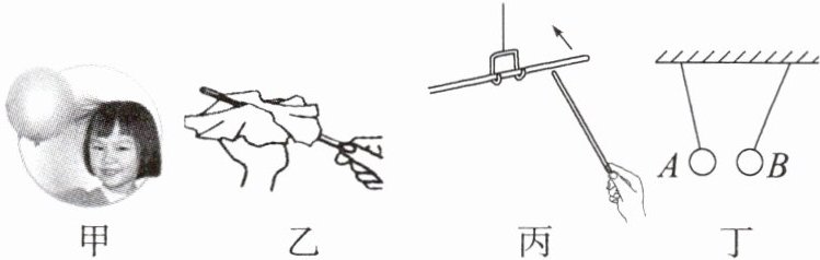 )A. 如图甲所示,气球摩擦头发后可以吸引头发,说明气球摩擦后能创造电荷吸引头发