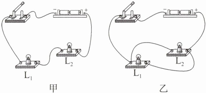 )A.在甲电路中,开关闭合后,用导线直接连接灯泡L₁的两个接线柱,灯泡L₁、L₂不发光