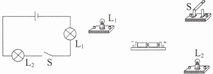 13. (2025·凤鸣山中学期中)如图所示的电路中,需要开关S只控制小灯泡$L_{1}$,只改动一根导线,请在要改动的导线上打“×”,然后用笔画线代替导线连接起来。
