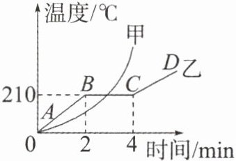 B.乙物质的熔点为210℃,熔化过程持续了4min