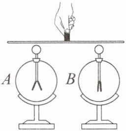 3. (2025·江津区期中)下图为两个相同的验电器,其中 A 带电,B 不带电,现用带有绝缘柄的金属棒把 A 和 B 连接起来。下列说法正确的是 (