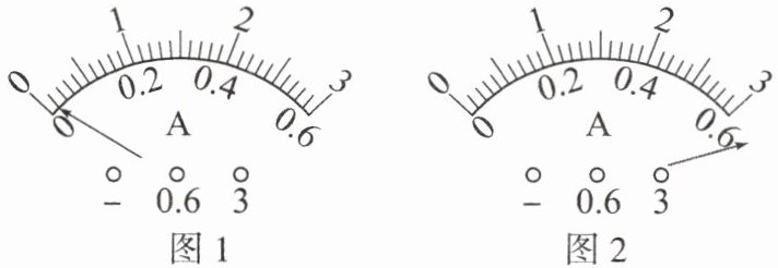 变式甲、乙两名同学在做“用电流表测电流”的分组实验中,闭合开关前,发现电流表的指针均指在零刻度线处。当闭合开关试触时,发现电流表的指针摆动分别出现了如图 1、2 所示的情况。请分析他们在电流表的使用上分别存在什么问题,并写在下面的横线上。