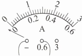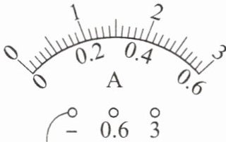 变式 1 通过电流表的电流为 0.46 A,请在图中用笔画线代替导线选择合适的量程,并画出指针的位置。