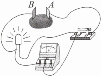 变式如图所示,小明将A、B两种不同的金属片插入土豆中,制成土豆电池,闭合开关,小灯泡发光,电压表有示数。下列说法正确的是 (