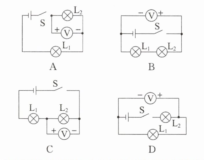 变式下列电路中,能用电压表正确测出灯L₂两端电压的是 (