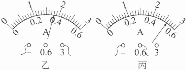 11. (2025·渝北中学月考)如图甲所示的电路图中,闭合开关,电流表$A_{1}$、$A_{2}$选用的量程及指针偏转分别如图乙、丙所示,求: