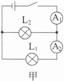 解:由题图甲可知,两灯并联,电流表 $ A_1 $ 测量干路中的电流,电流表 $ A_2 $ 测量通过灯 $ L_1 $ 的电流。