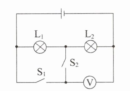 - 只闭合开关$S_{2}$时,电压表测$L_{2}$两端电压,即$U_{2}=U_{L_{2}}$;