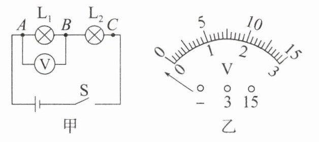 (3)电路连接正确后进行实验,某小组分别测出小灯泡$L_{1}$、$L_{2}$两端的电压和并联电路的总电压,电压表的示数都相同,如图乙所示,其示数为
