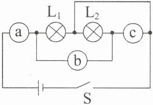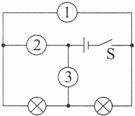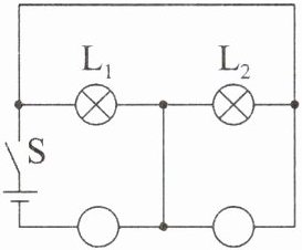 3. 如图所示的电路,请在圆圈中填入电压表或电流表符号,使开关S闭合后,两盏灯都能正常工作。