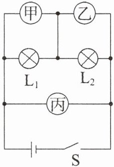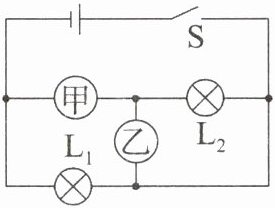 2. 如图所示的电路中,闭合开关S后,两灯均发光,则甲是