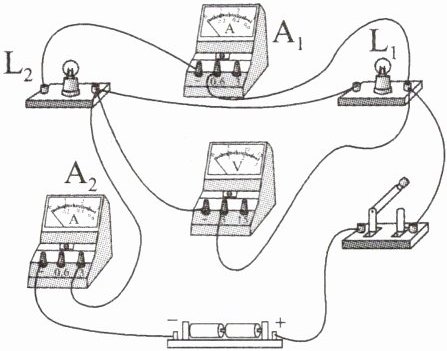 联,若电流表A₁的示数为0.3 A,电流表A₂的示数为0.9 A,则通过灯L₁的电流为0.6