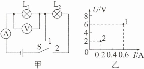 典例2 如图甲所示,当开关S由接点1掷到接点2时,电流表和电压表的示数变化如图乙所示,则电源电压为