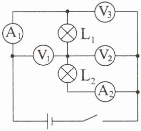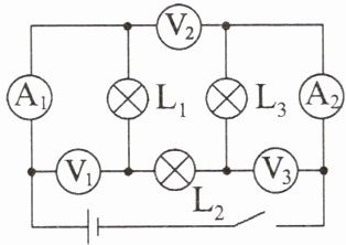 A;若电源电压为12 V,电压表V₁的示数为3 V,电压表V₃的示数为5 V,则电压表V₂的示数为12
