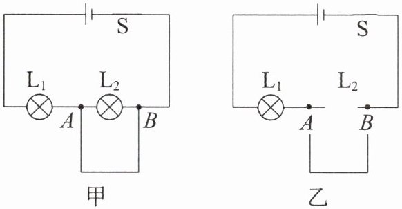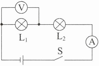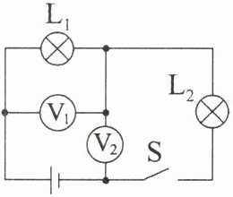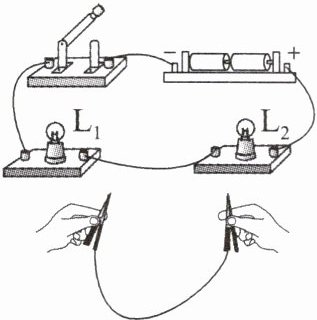 1.(2023·南开中学阶段检测)小勇连接的实验电路如图所示,他检查导线连接无误后,闭合开关,发现灯$L_{1}$、$L_{2}$均不发光,于是他用一根导线来排查故障。当导线连接灯$L_{1}$两端时,两灯仍不发光,连接灯$L_{2}$两端时,灯$L_{1}$发光、灯$L_{2}$不发光。由此判断电路故障是(
