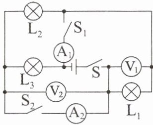 6. 如图所示,开关S闭合后,灯泡L₁、L₂都发光,两个电表都有示数,工作一段时间后,灯泡L₂突然熄灭,灯泡L₁仍然发光,两个电表都无示数,该电路出现的故障可能是