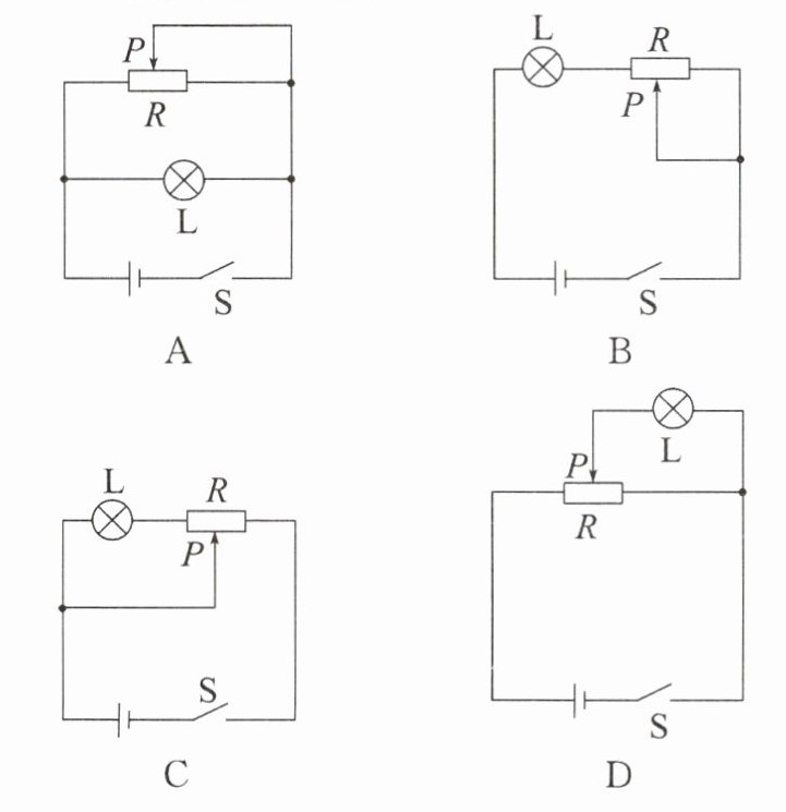 13. (2023·重庆十一中期中改编)如图所示,在保证电路安全的情况下,一定能用滑动变阻器调节小灯泡由亮到灭的是 (