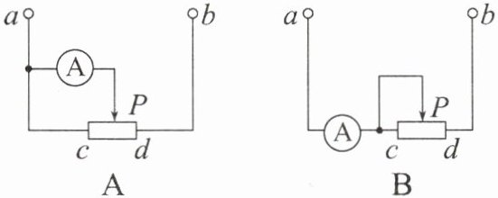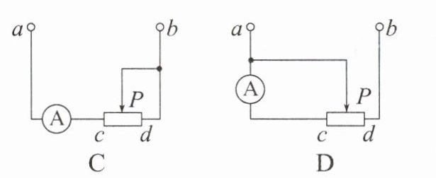 11. 如图所示的电路中,a、b两点间电压不变,当滑动变阻器的滑片向右端移动一段距离后,下列电路中电流表的示数会变小的是(