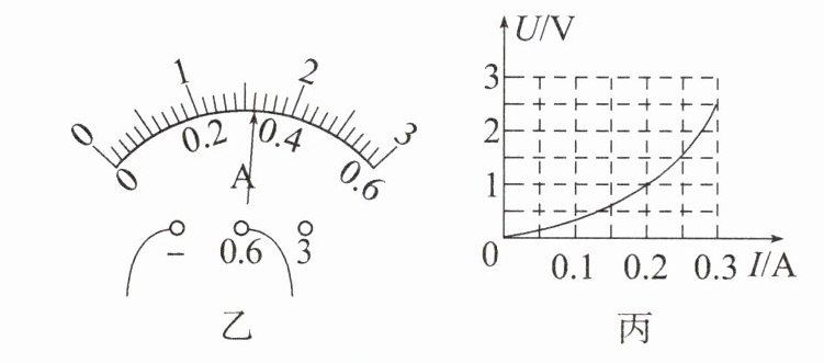 (4)调节滑动变阻器的滑片,当电压表的示数为3.2V时,电流表的示数如图乙所示,其示数为____A,此时小灯泡的电阻为____Ω。为了测量小灯泡正常发光时的电阻,应该将滑动变阻器的滑片向____(选填“左”或“右”)移动。