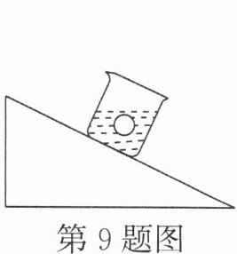 9. 小球悬浮在静止于斜面上的杯内液体中,请在图中画出小球所受重力 G 和浮力 $ F_{浮} $ 两个力的示意图。(设两个力的作用点都在球心)