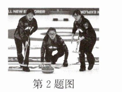 2. 如图所示,在冰壶比赛中,运动员将冰壶掷出后,冰壶由于______继续向前运动,此时水平冰面对冰壶的支持力______(选填“做功”或“不做功”)。