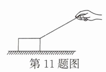 11. 小白同学用斜向右上的拉力拉动物体,向右做匀速直线运动,请在图中画出绳子对手的拉力F。
