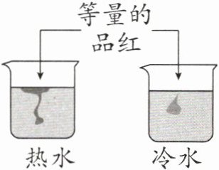 D 解析:分子在不断地运动,分子的运动与温度有关,温度高时,分子运动快,温度低时,分子运动慢,故当热水大面积变成红色时,冷水中只有品红周围变成了红色。