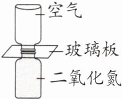 5. 如图所示是气体扩散的实验。抽掉玻璃板,几分钟后,两个瓶子内的气体会混合在一起,且颜色变得均匀。关于这一现象,下列说法正确的是()