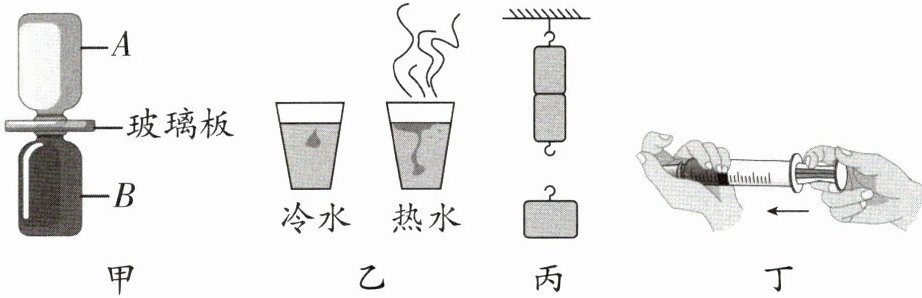 D. 图丁中,注射器里装入空气,用手可推动活塞压缩空气,说明分子之间不存在斥力