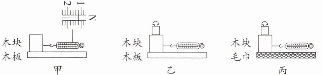 10. 在“探究影响滑动摩擦力大小的因素”实验中,小丽完成了如图所示的甲、乙、丙三次实验。