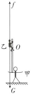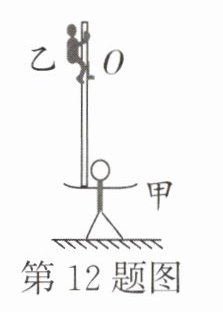 12. (2024 八年级下深圳期中)在如图杂技“顶竿”表演中,甲肩部顶着竹竿,乙顺着竹竿竖直向上匀速爬行,请画出此时乙在竖直方向上的受力示意图。