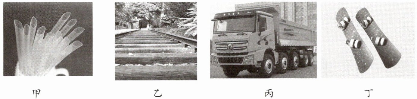 A 解析:A.饮料管的一端剪成斜口,是在压力一定时通过减小受力面积来增大压强,故A符合题意;BCD.在铁轨下面垫上枕木、大型载重车有很多车轮、滑雪板做得比较宽大,都是在压力一定时通过增大受力面积来减小压强,故BCD不符合题意。
