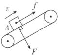 7. 如图所示,物体 A 与传送带一起匀速向上运动,画出物体 A 对传送带的压力和物体 A 受到的摩擦力。