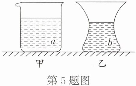 5. (2024八年级下东莞阶段练习)如图所示,水平桌面上有甲、乙两个质量相同的薄壁容器,两个容器开口大小相同、底面积相同,分别装有质量相同的a、b两种液体,两个容器中的液面深度不同。下列说法正确的是()