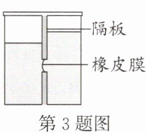 3. 如图所示,如果两侧液体均为水,此时橡皮膜向______(选填“左”或“右”)凸起。如果橡皮膜没有向任何一侧凸起,则说明左侧液体密度______(选填“大于”“小于”或“等于”)右侧液体密度。