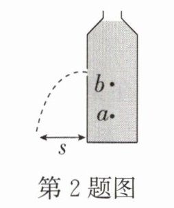 2. 如图,在一个不带瓶盖的塑料瓶侧壁打一个小孔,a、b为瓶中小孔下方位置不同的两点,用手堵住小孔,在瓶中装满某种液体。松手后,在液体喷出的过程中()