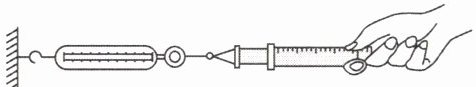 (3) 考虑到活塞与筒壁之间有摩擦, 小明继续拉动一小段距离后, 缓慢退回注射器筒, 在活塞刚要到筒内底部时弹簧测力计示数为 $ F' $, 则大气压值 $ p' = $______(用题中出现的物理量符号表示)。