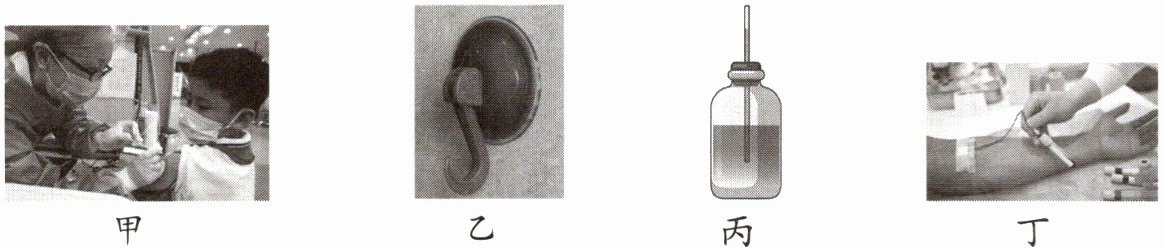D. 图丁: 用真空采血管抽血, 血液流入管中时, 管内气压高于人体血压