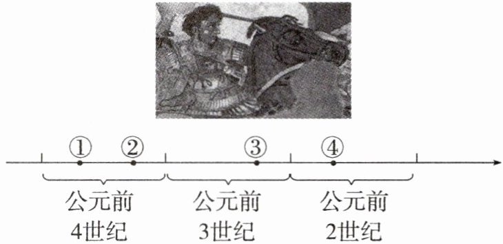 5.【时空观念】【教材图片改编】如图中的人物历经10年征战,建立了一个空前庞大的地跨欧、亚、非三洲的帝国。这个帝国建立的时间应位于下面年代尺的 (